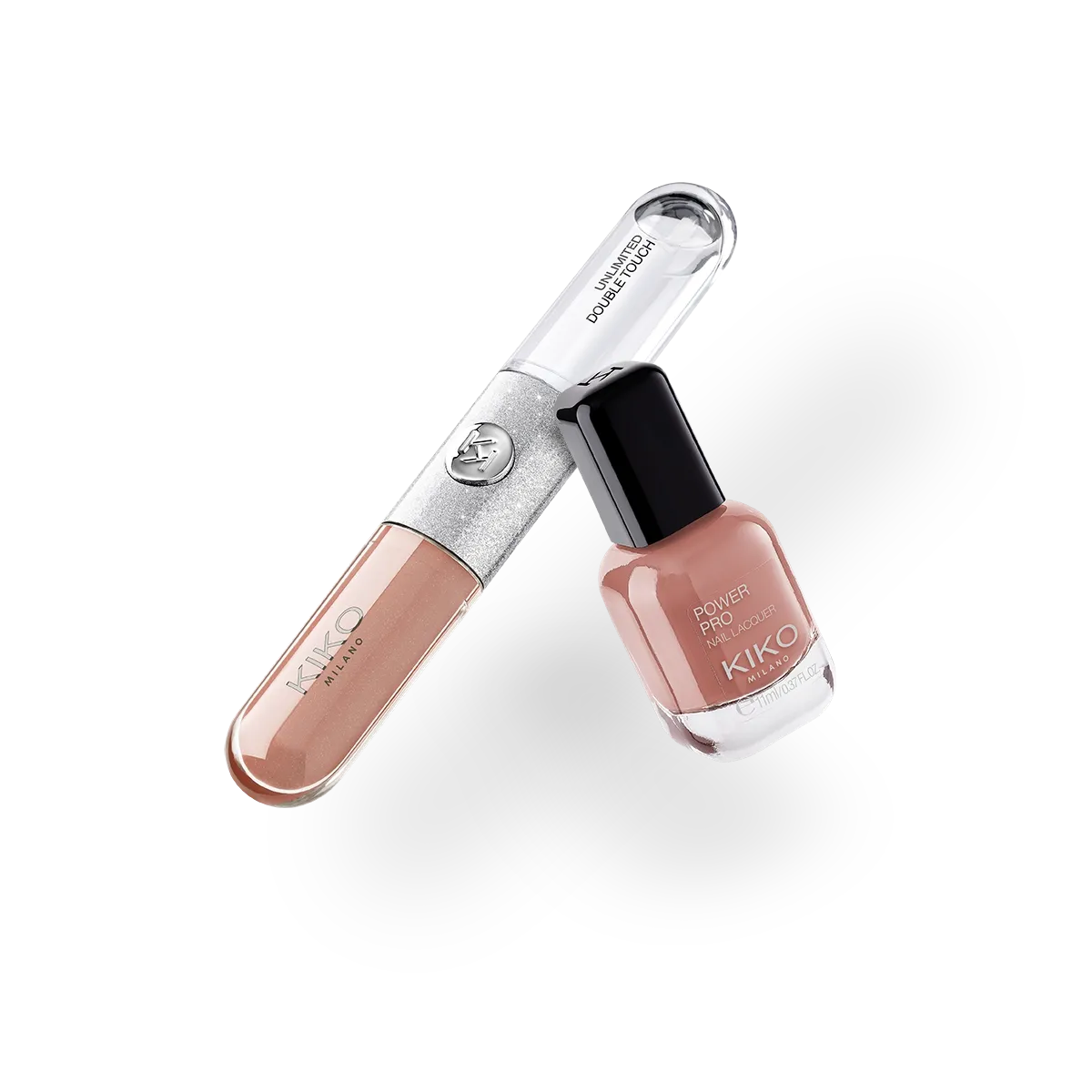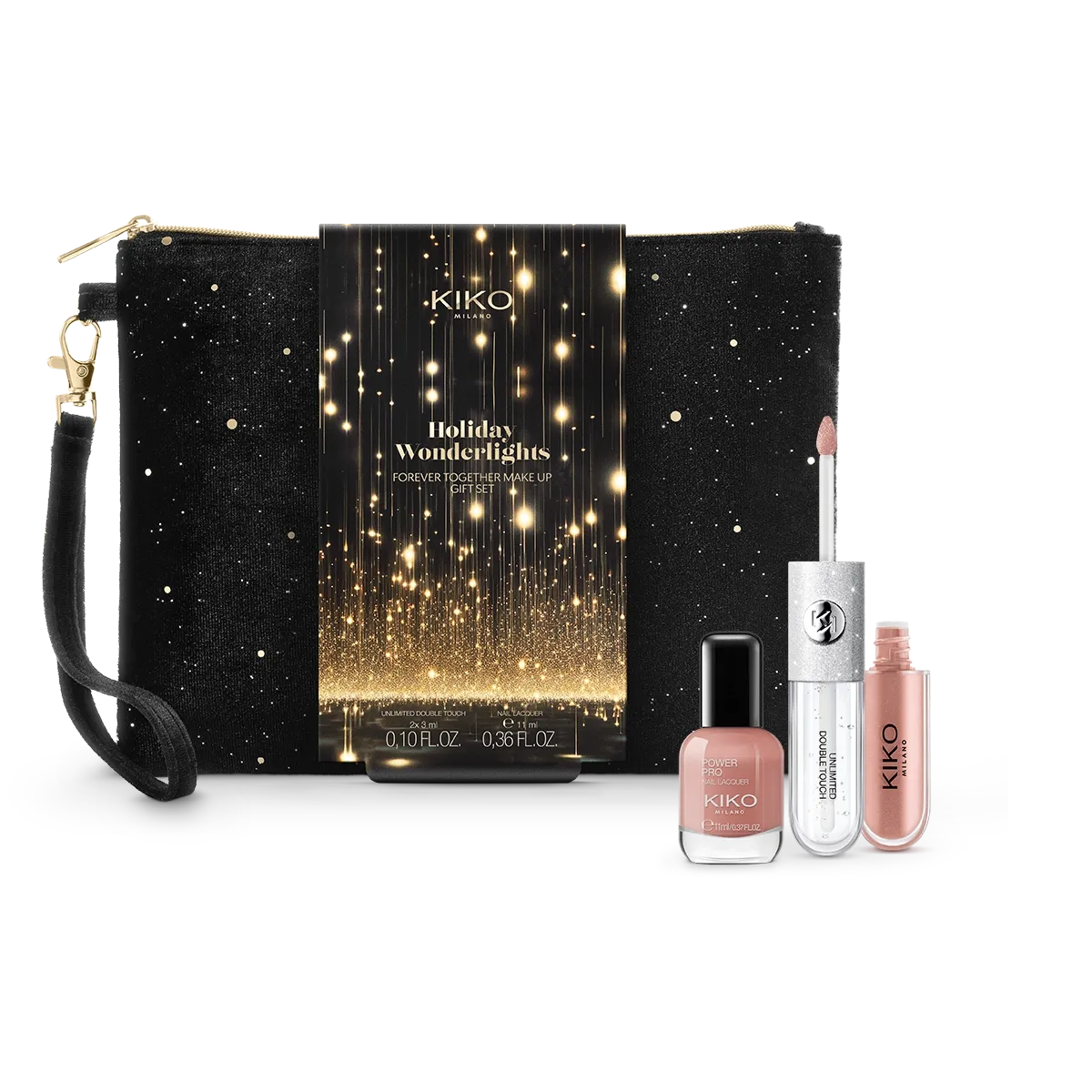 Conjunto de maquiagem constituído por um batom líquido brilhante e um verniz de unhas a efeito lustroso numa pochete preciosa.O conjunto contém:– No. 1 Unlimited Double TouchUm produto 2 em 1, um verdadeiro ritual para os lábios: batom líquido de longa duração* e sem transferência de um lado e um gloss transparente do outro, para iluminar os lábios com cor e um brilho espelhado.– N.º 1 New Power Pro Nail LacquerVerniz de unhas com uma fórmula com alta concentração de pigmentos que garante um resultado uniforme e um cor intensa e rica, com um efeito superbrilhante.– N.º 1 Pochete para maquiagem e acessóriosPrática e elegante, é feita em tecido com efeito de veludo preto e decorada com uma cascata de detalhes dourados brilhantes. Formato retangular, fechamento em zíper e alça para o pulso.Ideal para:valorizar os lábios e as mãos com um visual para os lábios e manicure impecáveis, combinando e incrivelmente brilhantes. O presente perfeito.